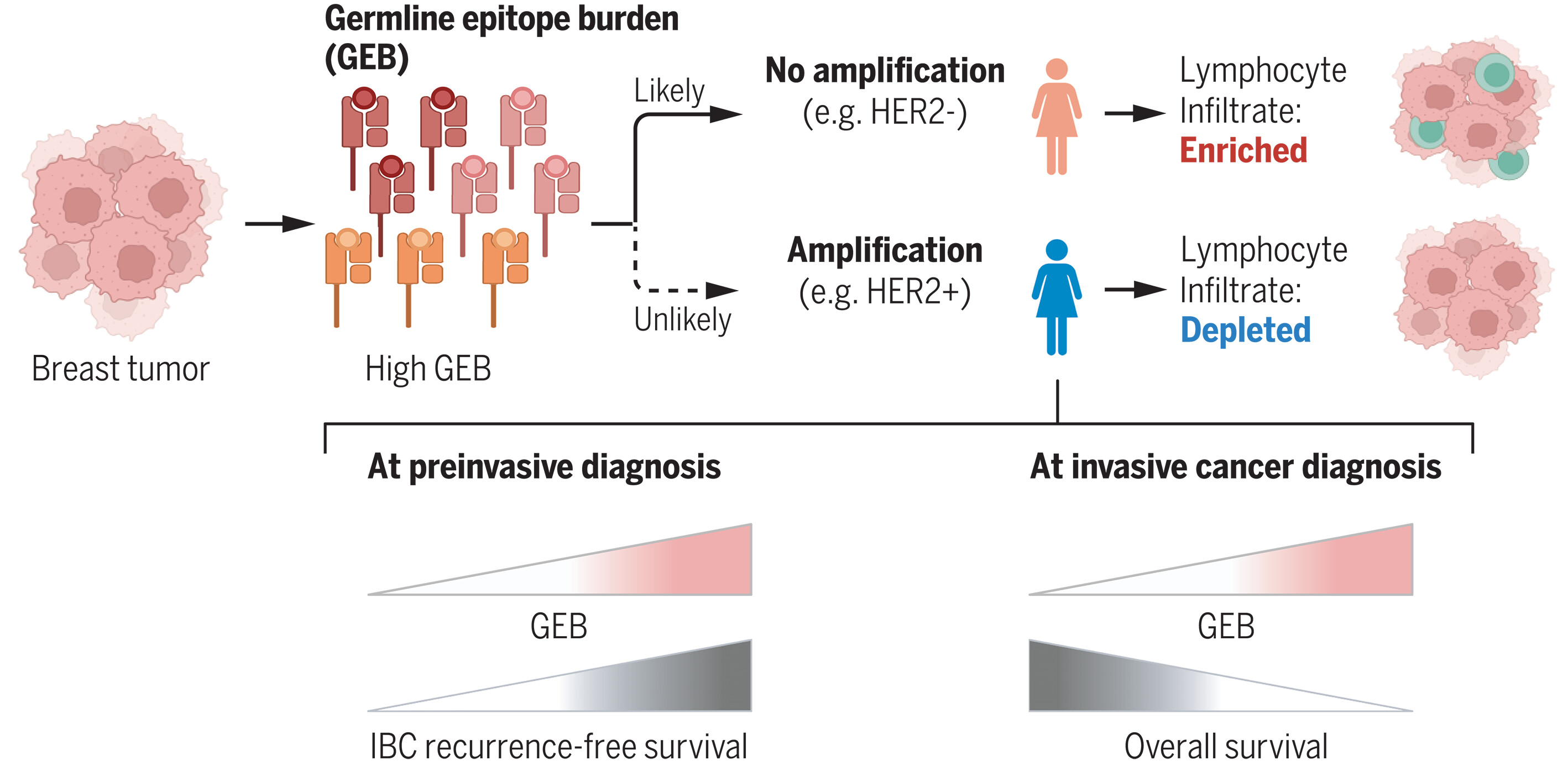 Cancers such as HER2-positive breast cancer are typically characterized by their location and marker proteins that influence how they behave and what treatments they respond to. However, not all cancers or tumors that nominally fall into a single category behave the same way. Some of these differences are caused by genetically encoded attributes affecting the tumor’s interactions with the immune system, as shown by Houlahan et al. (see the Perspective by Waddell and Addala). The authors demonstrated that a patient’s germline variants in an oncogene of interest, such as HER2, as well as their human leukocyte antigens responsible for the presentation of antigens to T cells, help to determine which tumors might survive and which ones will likely be destroyed by the patient’s immune system. —Yevgeniya Nusinovich